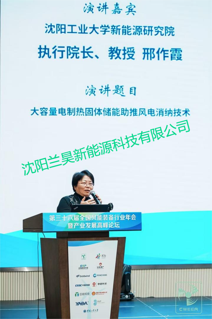 大容量電制熱固體儲能技術既可實現儲能又可實現熱電解耦,已成為源側調峰的優質選擇和解決消納的一種有效手段。在全生命周期協同與創新主題論壇上,沈陽工業大學新能源研究院執行院長、教授邢作霞在《大容量電制熱固體儲能助推風電消納技術》報告中,詳細闡述固體電制熱儲能的機理、結構構成材料、相關研究成果及電制熱儲熱在新型電力系統中的應用情況。風電儲熱可充分利用廢渣、鋼渣、煤粉(粉煤灰等)、尾礦產等廢棄物資源,并將其高效、高質、高量轉化為熱能,可有效解決固廢處理和清潔能源消納的雙重難題。