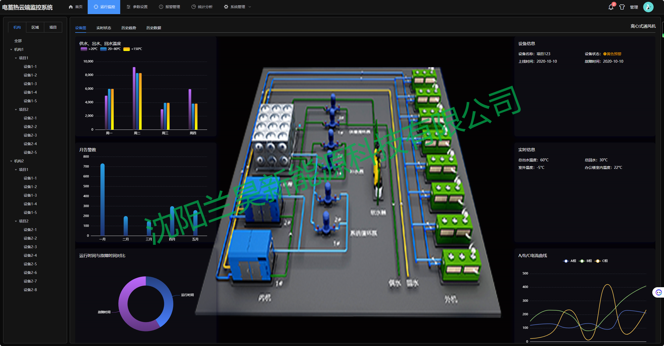 實時顯示蓄能供熱裝置的運行狀態參數。